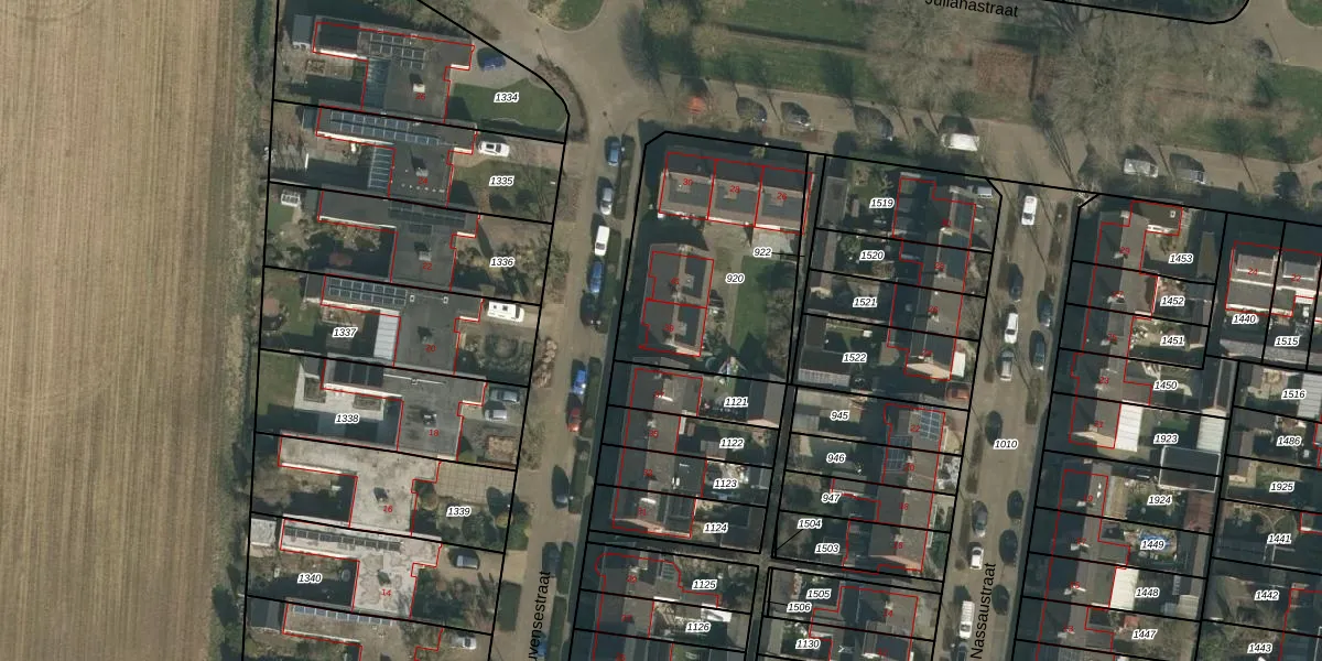 Het perceel waarop Leuvensestraat 39 staat heeft een oppervlakte van 896 m². Dit is een groot perceel. De perceeloppervlakte wordt geregistreerd door het Kadaster. Gedetailleerde informatie over de maten van dit perceel kunt u vinden in het rapport Kadastrale kaart met maatvoering van Leuvensestraat 39.