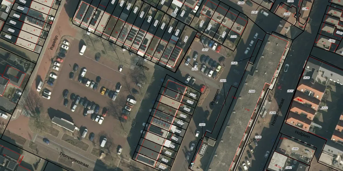 Het perceel waarop Lunette 21 staat heeft een oppervlakte van 143 m². Dit is een middelgroot perceel. De perceeloppervlakte wordt geregistreerd door het Kadaster. Gedetailleerde informatie over de maten van dit perceel kunt u vinden in het rapport Kadastrale kaart met maatvoering van Lunette 21.