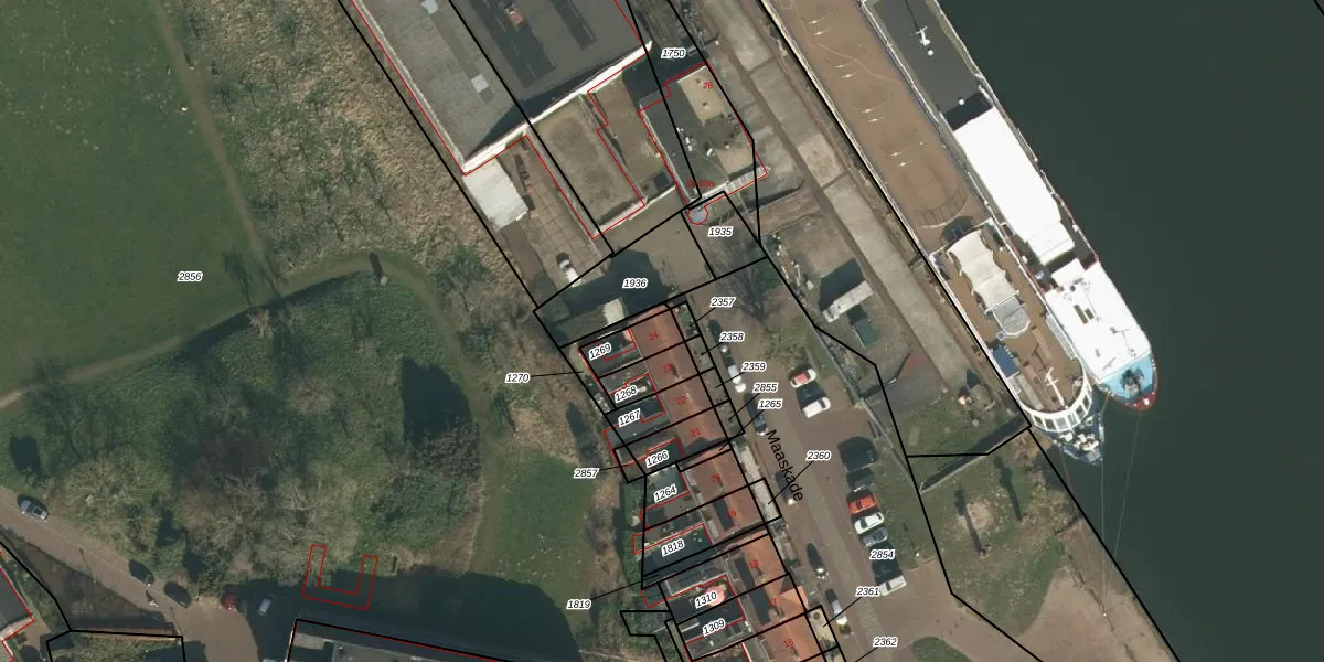 Het perceel waarop Maaskade 24 staat heeft een oppervlakte van 78 m². Dit is een klein perceel. De perceeloppervlakte wordt geregistreerd door het Kadaster. Gedetailleerde informatie over de maten van dit perceel kunt u vinden in het rapport Kadastrale kaart met maatvoering van Maaskade 24.