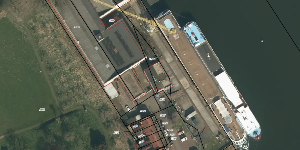 Het perceel waarop Maaskade 28-a staat heeft een oppervlakte van 2660 m². Dit is een zeer groot perceel. De perceeloppervlakte wordt geregistreerd door het Kadaster. Gedetailleerde informatie over de maten van dit perceel kunt u vinden in het rapport Kadastrale kaart met maatvoering van Maaskade 28-a.