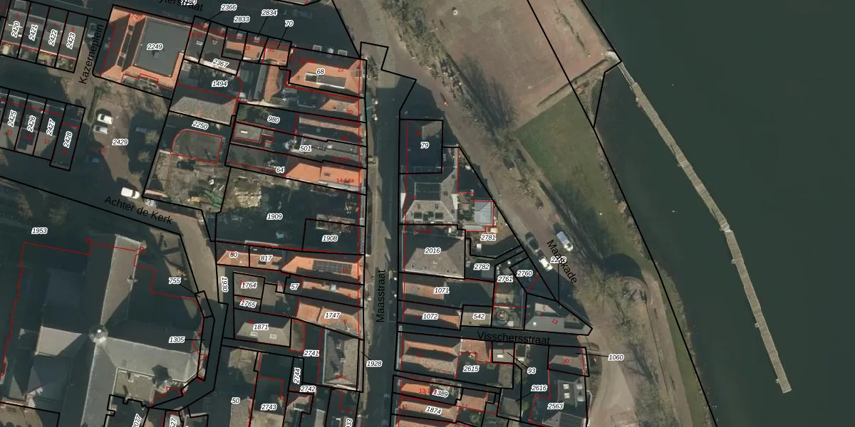 Maasstraat 25 is gelegen op kadastraal perceel GVE00B2781. Deze kadastrale aanduiding is uniek en wordt gebruikt door het Kadaster om eigendomsrechten en andere zakelijke rechten vast te leggen. Het perceel maakt onderdeel uit van de kadastrale gemeente Grave.