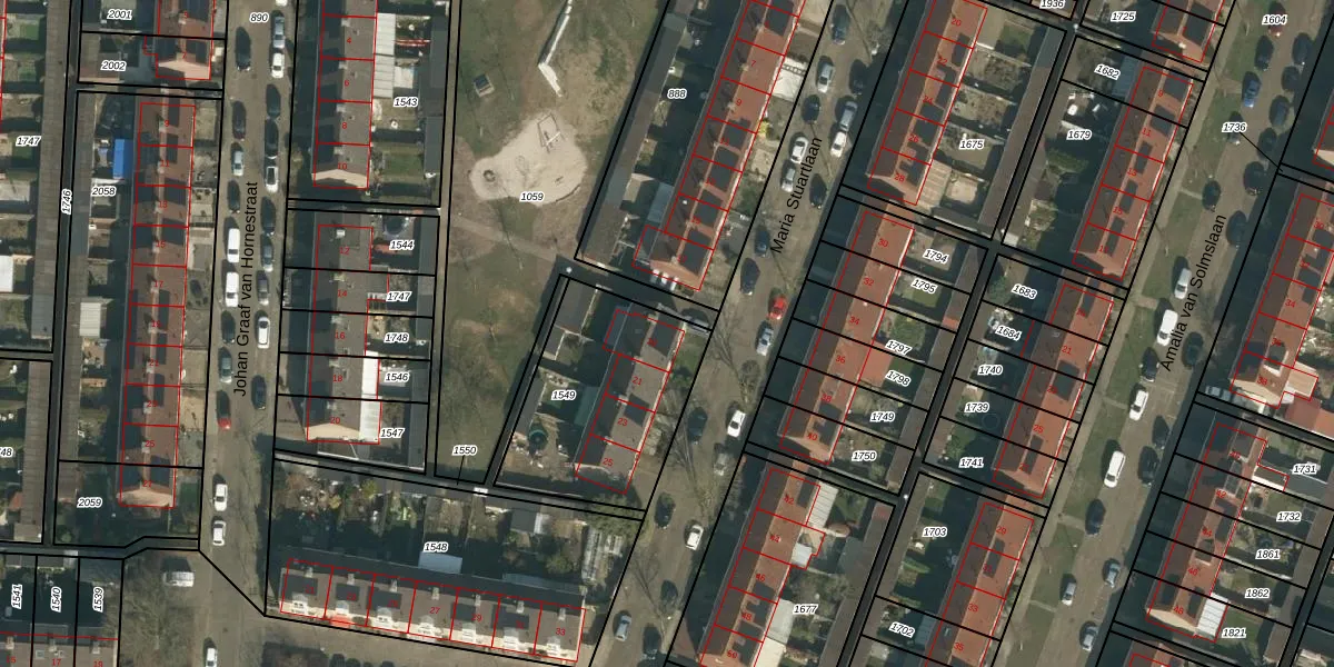 Het perceel waarop Maria Stuartlaan 19 staat heeft een oppervlakte van 708 m². Dit is een groot perceel. De perceeloppervlakte wordt geregistreerd door het Kadaster. Gedetailleerde informatie over de maten van dit perceel kunt u vinden in het rapport Kadastrale kaart met maatvoering van Maria Stuartlaan 19.