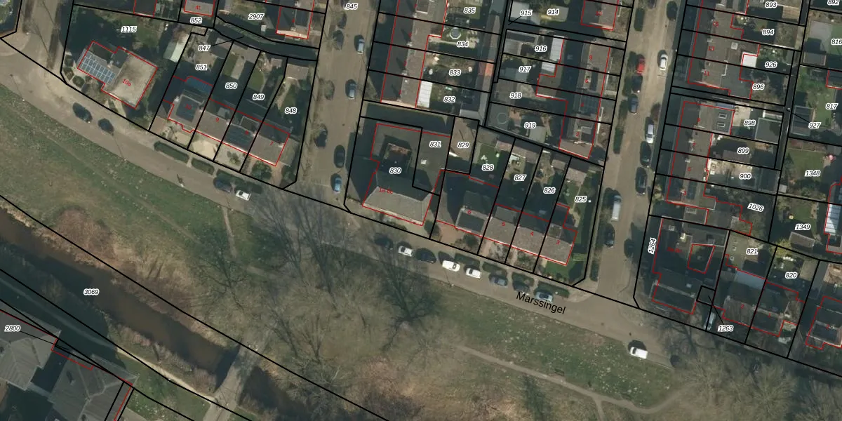 Het perceel waarop Marssingel 6-b staat heeft een oppervlakte van 433 m². Dit is een groot perceel. De perceeloppervlakte wordt geregistreerd door het Kadaster. Gedetailleerde informatie over de maten van dit perceel kunt u vinden in het rapport Kadastrale kaart met maatvoering van Marssingel 6-b.