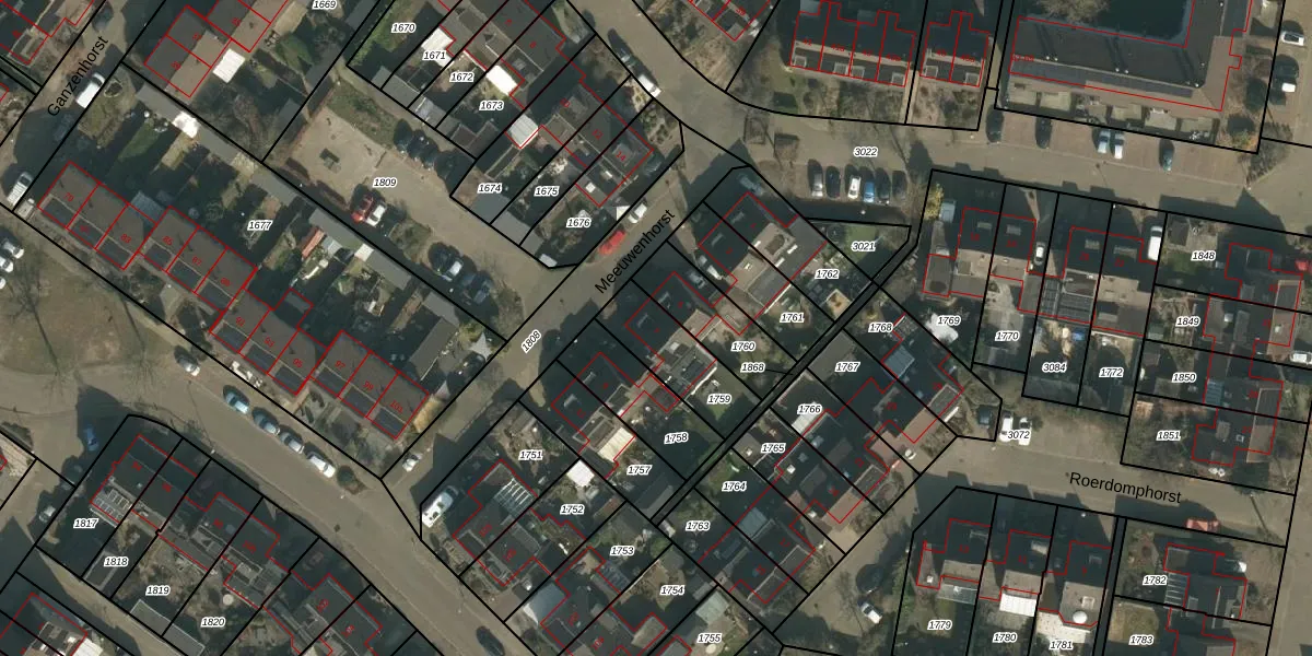 Gebruik de zoekbalk of klik op een perceel voor informatie over de adressen binnen dit perceel.
