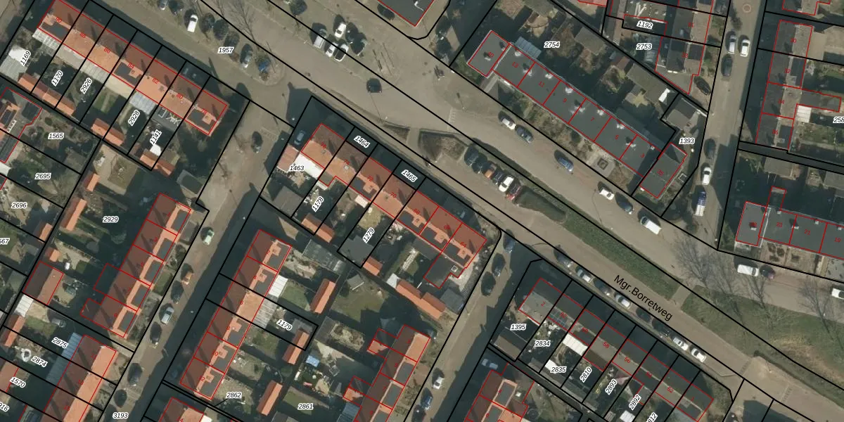 Het perceel waarop Mgr.Borretweg 68 staat heeft een oppervlakte van 5049 m². Dit is een zeer groot perceel. De perceeloppervlakte wordt geregistreerd door het Kadaster. Gedetailleerde informatie over de maten van dit perceel kunt u vinden in het rapport Kadastrale kaart met maatvoering van Mgr.Borretweg 68.