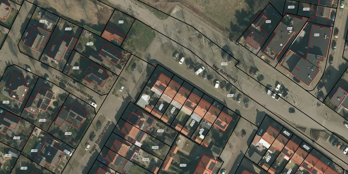 Het perceel waarop Mgr.Borretweg 88 staat heeft een oppervlakte van 180 m². Dit is een middelgroot perceel. De perceeloppervlakte wordt geregistreerd door het Kadaster. Gedetailleerde informatie over de maten van dit perceel kunt u vinden in het rapport Kadastrale kaart met maatvoering van Mgr.Borretweg 88.