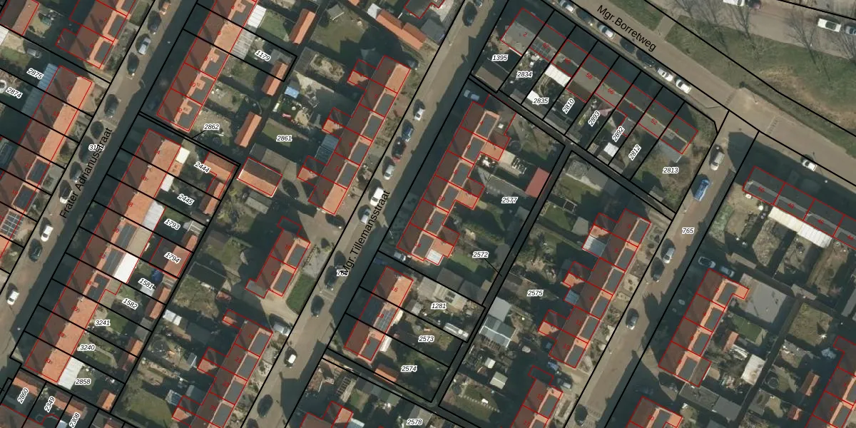 Mgr.Tillemansstraat 12 is gelegen op kadastraal perceel GVE00A2577. Deze kadastrale aanduiding is uniek en wordt gebruikt door het Kadaster om eigendomsrechten en andere zakelijke rechten vast te leggen. Het perceel maakt onderdeel uit van de kadastrale gemeente Grave.