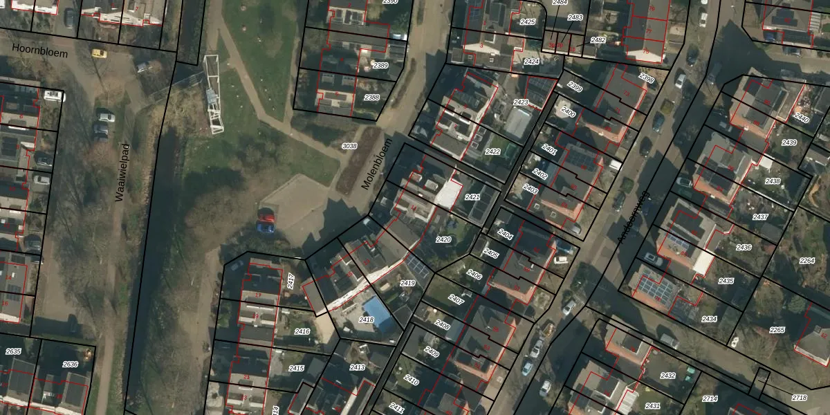 Het perceel waarop Molenbloem 11 staat heeft een oppervlakte van 307 m². Dit is een groot perceel. De perceeloppervlakte wordt geregistreerd door het Kadaster. Gedetailleerde informatie over de maten van dit perceel kunt u vinden in het rapport Kadastrale kaart met maatvoering van Molenbloem 11.