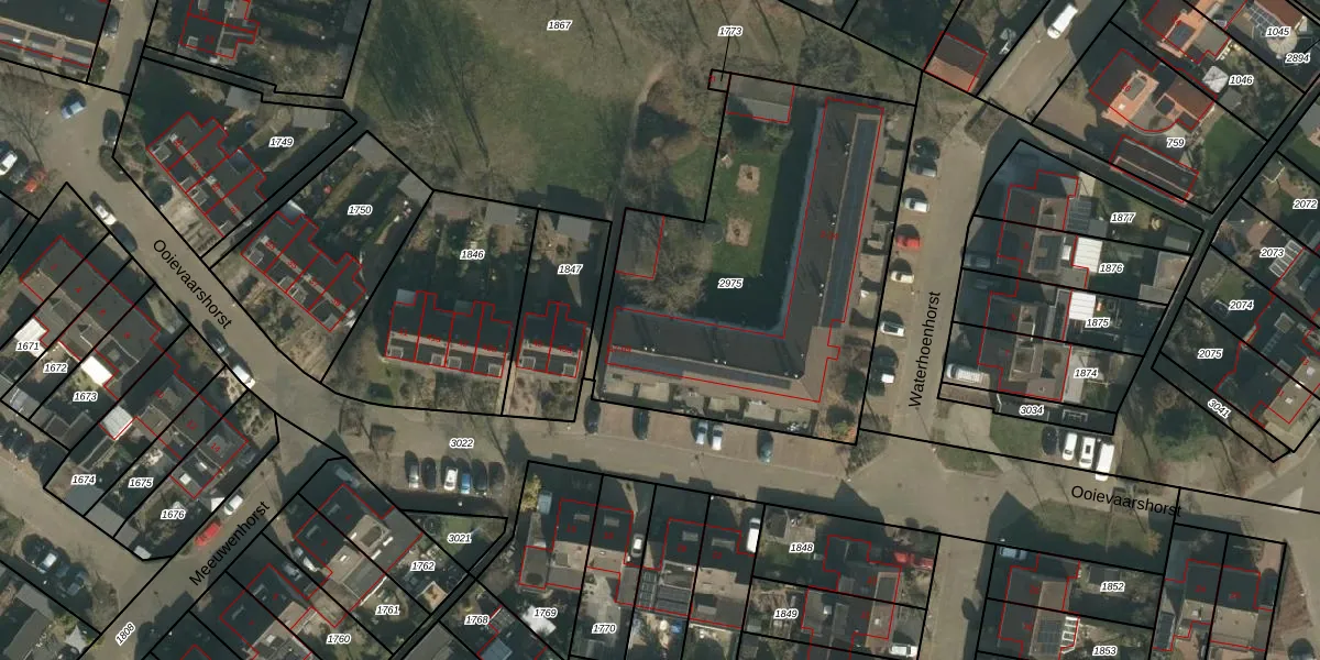 Het perceel waarop Ooievaarshorst 53 staat heeft een oppervlakte van 1851 m². Dit is een zeer groot perceel. De perceeloppervlakte wordt geregistreerd door het Kadaster. Gedetailleerde informatie over de maten van dit perceel kunt u vinden in het rapport Kadastrale kaart met maatvoering van Ooievaarshorst 53.