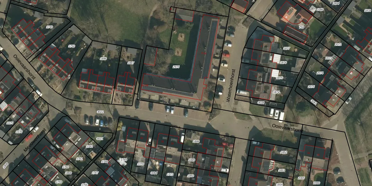 Het perceel waarop Ooievaarshorst 63 staat heeft een oppervlakte van 1851 m². Dit is een zeer groot perceel. De perceeloppervlakte wordt geregistreerd door het Kadaster. Gedetailleerde informatie over de maten van dit perceel kunt u vinden in het rapport Kadastrale kaart met maatvoering van Ooievaarshorst 63.