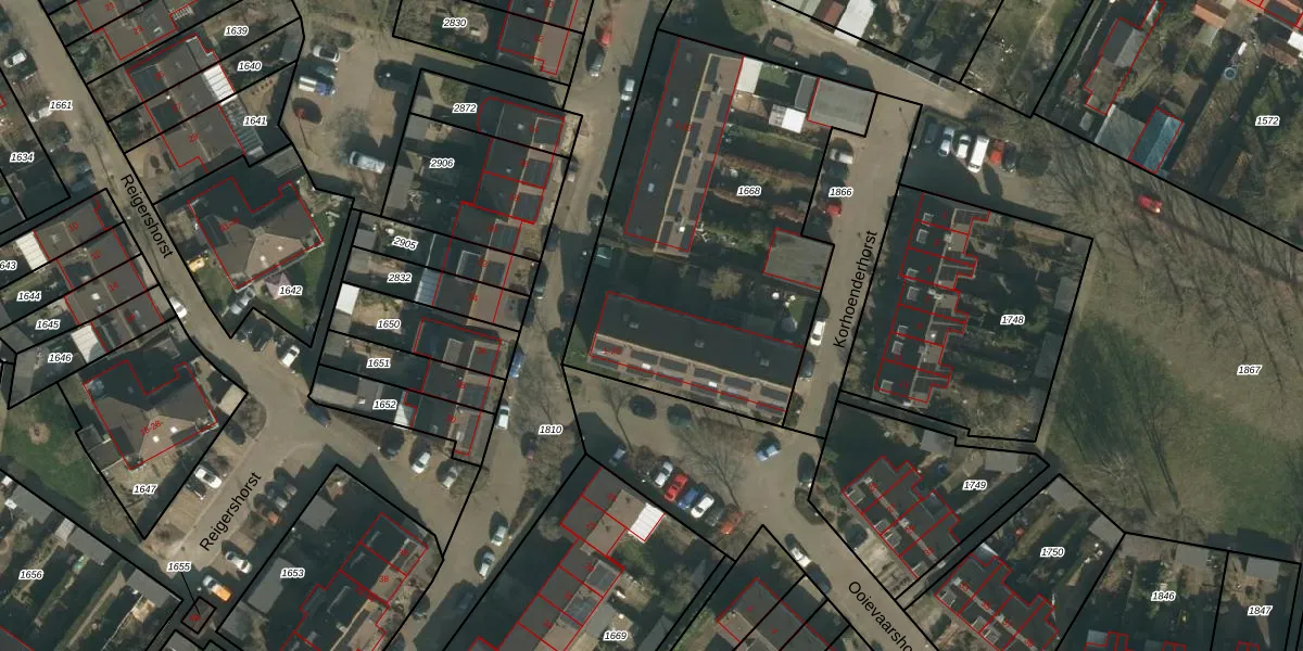 Het perceel waarop Ooievaarshorst 7 staat heeft een oppervlakte van 1793 m². Dit is een zeer groot perceel. De perceeloppervlakte wordt geregistreerd door het Kadaster. Gedetailleerde informatie over de maten van dit perceel kunt u vinden in het rapport Kadastrale kaart met maatvoering van Ooievaarshorst 7.