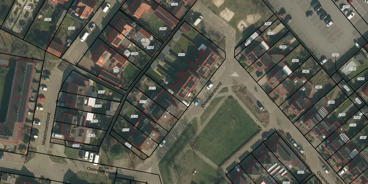 Het perceel waarop Ooievaarshorst 79 staat heeft een oppervlakte van 1079 m². Dit is een zeer groot perceel. De perceeloppervlakte wordt geregistreerd door het Kadaster. Gedetailleerde informatie over de maten van dit perceel kunt u vinden in het rapport Kadastrale kaart met maatvoering van Ooievaarshorst 79.
