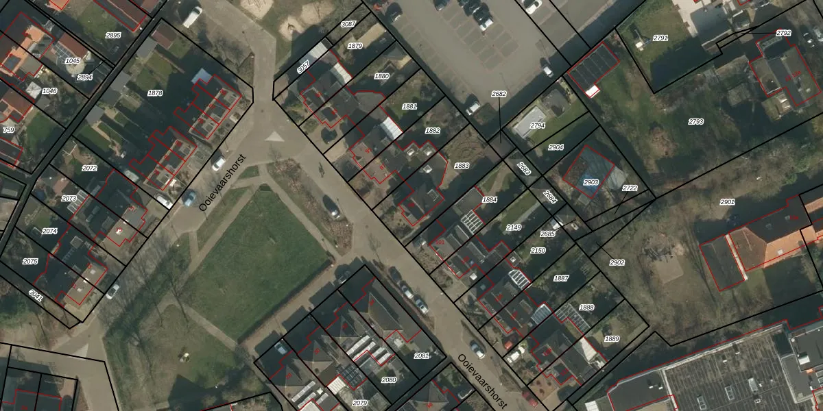 Het perceel waarop Ooievaarshorst 99 staat heeft een oppervlakte van 386 m². Dit is een groot perceel. De perceeloppervlakte wordt geregistreerd door het Kadaster. Gedetailleerde informatie over de maten van dit perceel kunt u vinden in het rapport Kadastrale kaart met maatvoering van Ooievaarshorst 99.