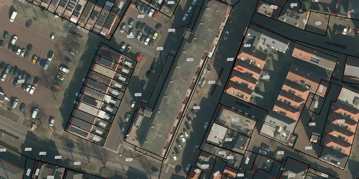 Het perceel waarop Poternen 31 staat heeft een oppervlakte van 1698 m². Dit is een zeer groot perceel. De perceeloppervlakte wordt geregistreerd door het Kadaster. Gedetailleerde informatie over de maten van dit perceel kunt u vinden in het rapport Kadastrale kaart met maatvoering van Poternen 31.