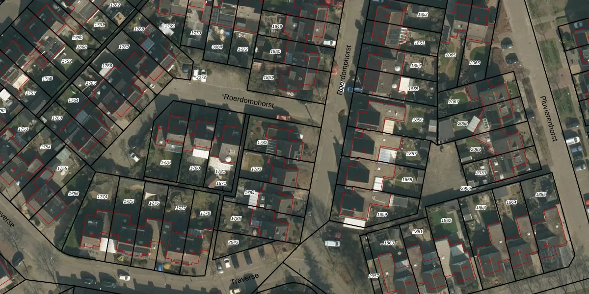 Gebruik de zoekbalk of klik op een perceel voor informatie over de adressen binnen dit perceel.