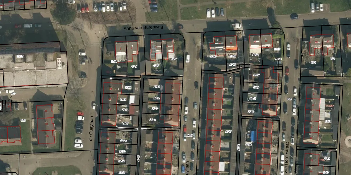 Gebruik de zoekbalk of klik op een perceel voor informatie over de adressen binnen dit perceel.