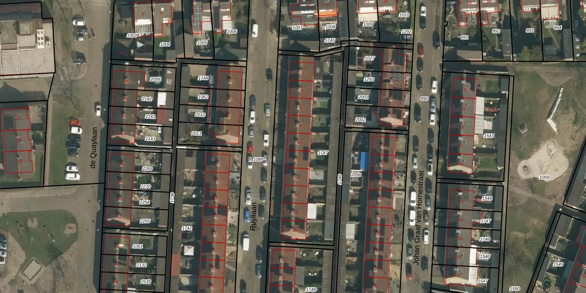 Het perceel waarop Ruyllaan 10 staat heeft een oppervlakte van 1446 m². Dit is een zeer groot perceel. De perceeloppervlakte wordt geregistreerd door het Kadaster. Gedetailleerde informatie over de maten van dit perceel kunt u vinden in het rapport Kadastrale kaart met maatvoering van Ruyllaan 10.