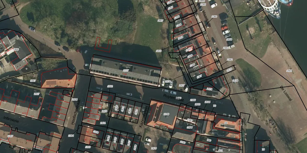Ruyterstraat 22 is gelegen op kadastraal perceel GVE00B2277. Deze kadastrale aanduiding is uniek en wordt gebruikt door het Kadaster om eigendomsrechten en andere zakelijke rechten vast te leggen. Het perceel maakt onderdeel uit van de kadastrale gemeente Grave.