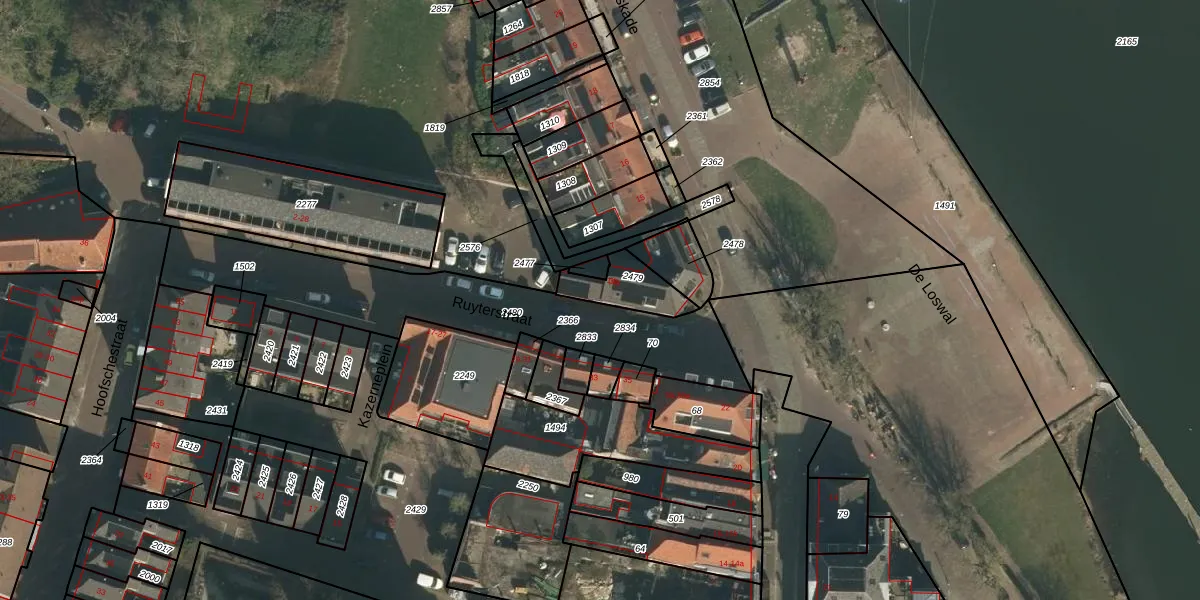 Ruyterstraat 30 is gelegen op kadastraal perceel GVE00B2479. Deze kadastrale aanduiding is uniek en wordt gebruikt door het Kadaster om eigendomsrechten en andere zakelijke rechten vast te leggen. Het perceel maakt onderdeel uit van de kadastrale gemeente Grave.