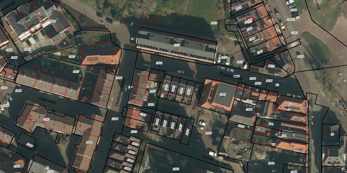 Het perceel waarop Ruyterstraat 5 staat heeft een oppervlakte van 62 m². Dit is een klein perceel. De perceeloppervlakte wordt geregistreerd door het Kadaster. Gedetailleerde informatie over de maten van dit perceel kunt u vinden in het rapport Kadastrale kaart met maatvoering van Ruyterstraat 5.