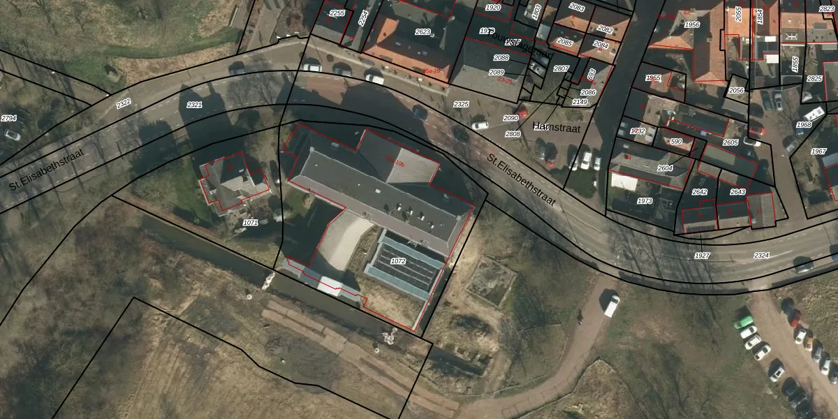 Het perceel waarop St.Elisabethstraat 10-b staat heeft een oppervlakte van 1819 m². Dit is een zeer groot perceel. De perceeloppervlakte wordt geregistreerd door het Kadaster. Gedetailleerde informatie over de maten van dit perceel kunt u vinden in het rapport Kadastrale kaart met maatvoering van St.Elisabethstraat 10-b.