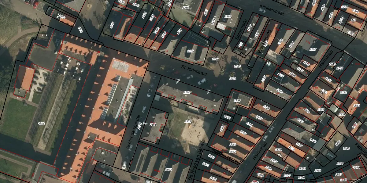 Het perceel waarop St.Jorisstraat 22 staat heeft een oppervlakte van 380 m². Dit is een groot perceel. De perceeloppervlakte wordt geregistreerd door het Kadaster. Gedetailleerde informatie over de maten van dit perceel kunt u vinden in het rapport Kadastrale kaart met maatvoering van St.Jorisstraat 22.