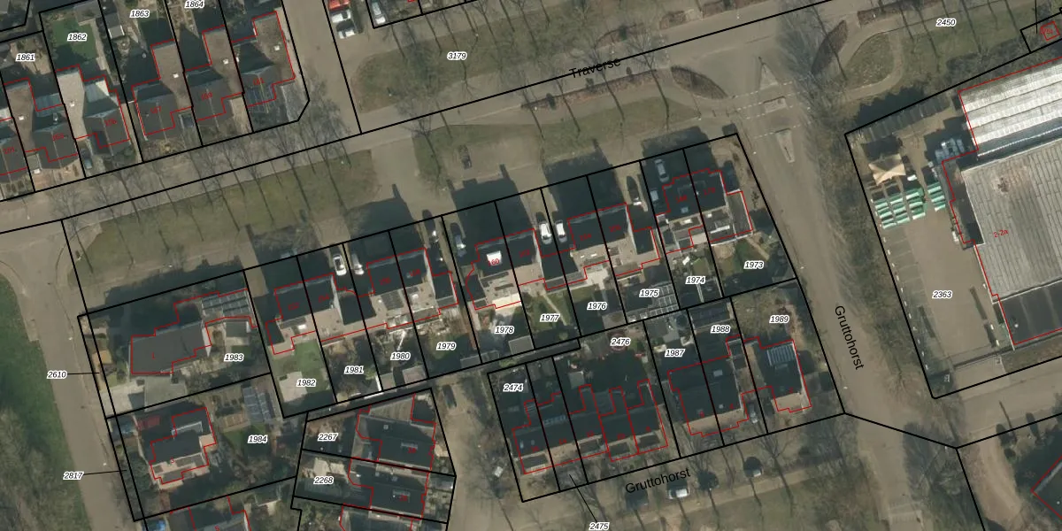 Het perceel waarop Traverse 162 staat heeft een oppervlakte van 262 m². Dit is een middelgroot perceel. De perceeloppervlakte wordt geregistreerd door het Kadaster. Gedetailleerde informatie over de maten van dit perceel kunt u vinden in het rapport Kadastrale kaart met maatvoering van Traverse 162.