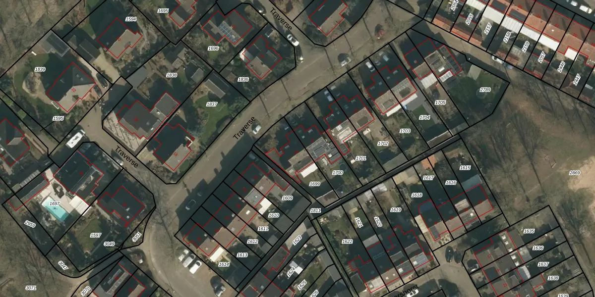 Het perceel waarop Traverse 19 staat heeft een oppervlakte van 318 m². Dit is een groot perceel. De perceeloppervlakte wordt geregistreerd door het Kadaster. Gedetailleerde informatie over de maten van dit perceel kunt u vinden in het rapport Kadastrale kaart met maatvoering van Traverse 19.