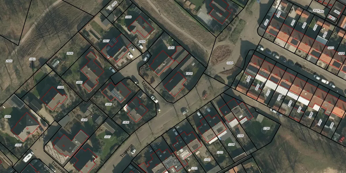 Het perceel waarop Traverse 2 staat heeft een oppervlakte van 428 m². Dit is een groot perceel. De perceeloppervlakte wordt geregistreerd door het Kadaster. Gedetailleerde informatie over de maten van dit perceel kunt u vinden in het rapport Kadastrale kaart met maatvoering van Traverse 2.
