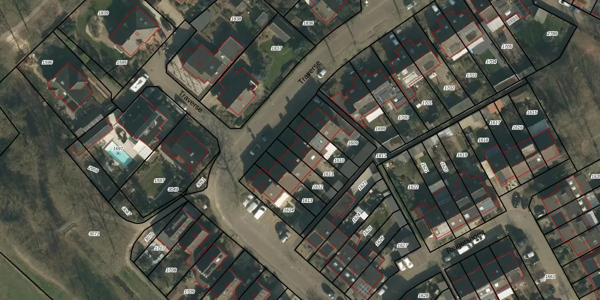 Het perceel waarop Traverse 25 staat heeft een oppervlakte van 150 m². Dit is een middelgroot perceel. De perceeloppervlakte wordt geregistreerd door het Kadaster. Gedetailleerde informatie over de maten van dit perceel kunt u vinden in het rapport Kadastrale kaart met maatvoering van Traverse 25.