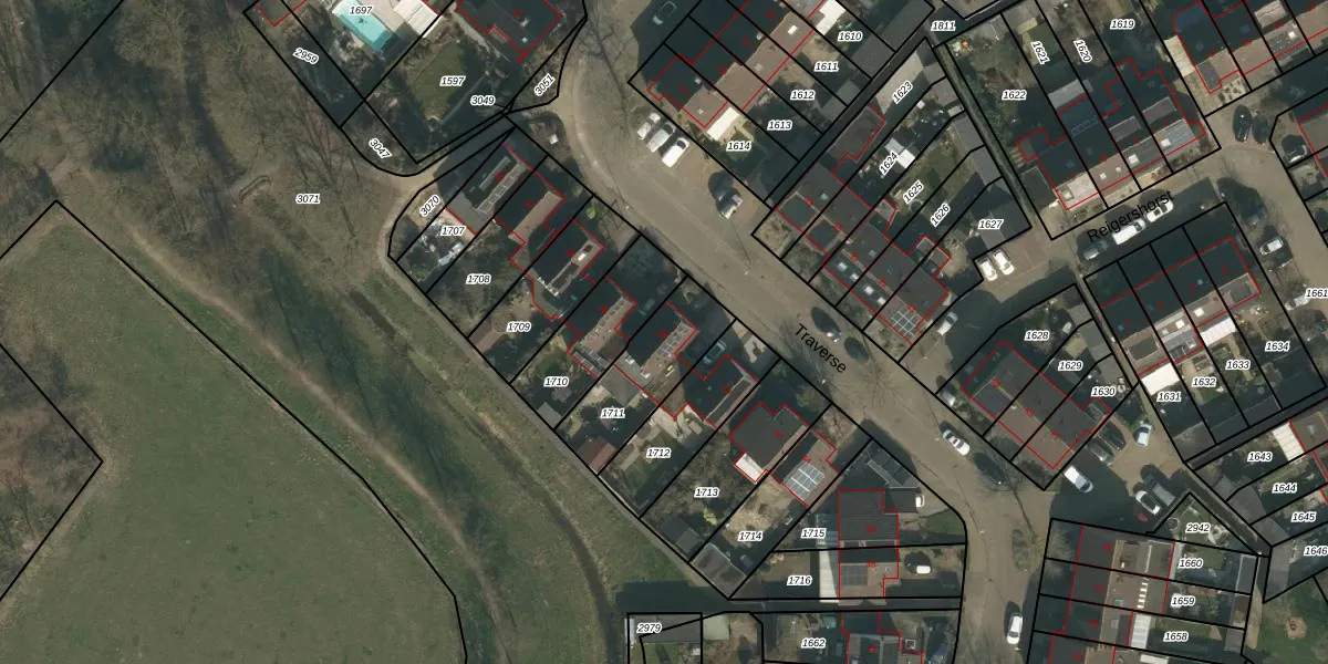 Het perceel waarop Traverse 38 staat heeft een oppervlakte van 288 m². Dit is een middelgroot perceel. De perceeloppervlakte wordt geregistreerd door het Kadaster. Gedetailleerde informatie over de maten van dit perceel kunt u vinden in het rapport Kadastrale kaart met maatvoering van Traverse 38.