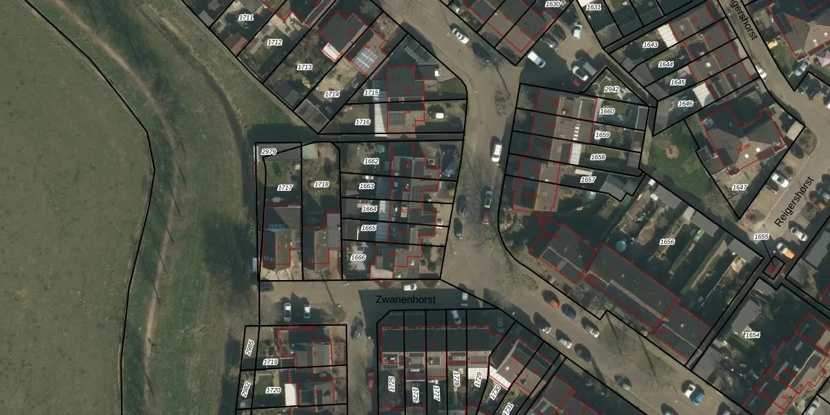 Gebruik de zoekbalk of klik op een perceel voor informatie over de adressen binnen dit perceel.