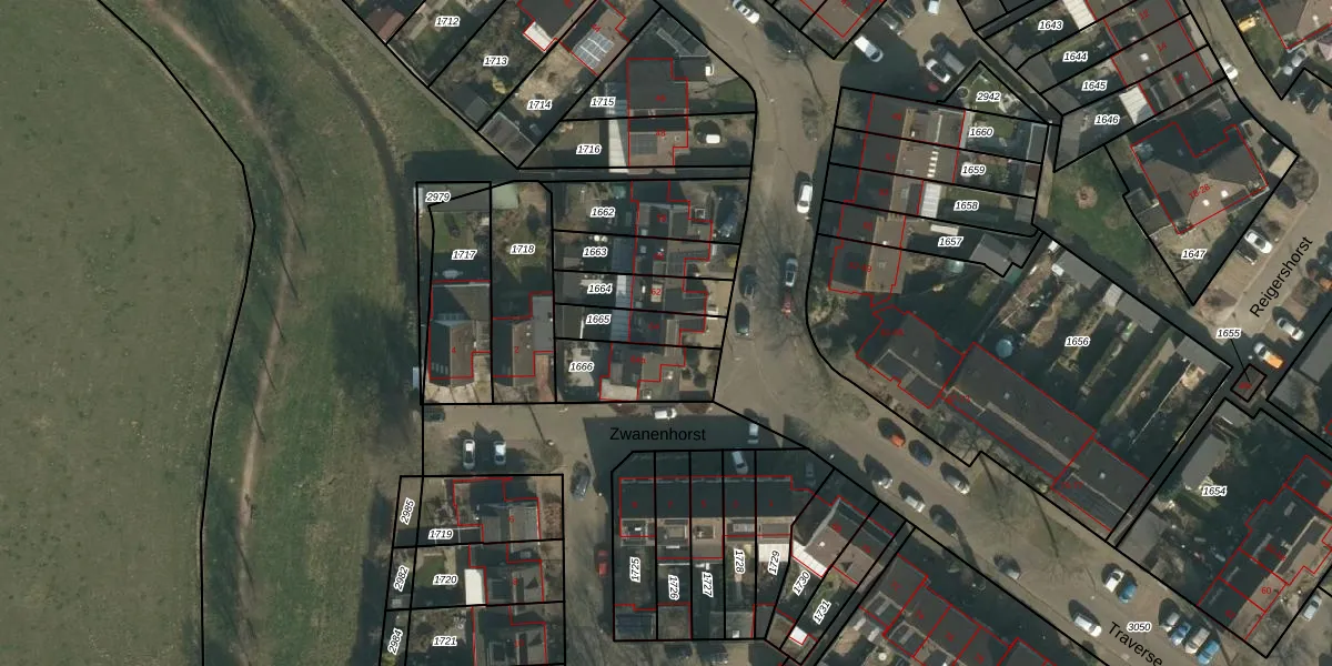 Het perceel waarop Traverse 64 staat heeft een oppervlakte van 132 m². Dit is een middelgroot perceel. De perceeloppervlakte wordt geregistreerd door het Kadaster. Gedetailleerde informatie over de maten van dit perceel kunt u vinden in het rapport Kadastrale kaart met maatvoering van Traverse 64.