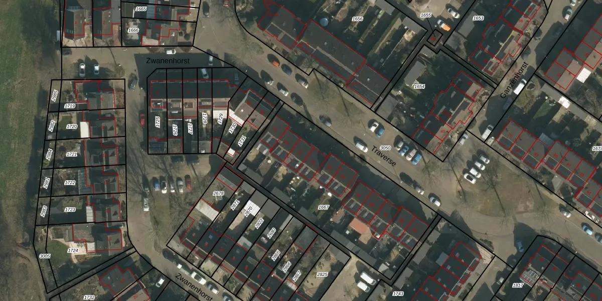 Het perceel waarop Traverse 76 staat heeft een oppervlakte van 1698 m². Dit is een zeer groot perceel. De perceeloppervlakte wordt geregistreerd door het Kadaster. Gedetailleerde informatie over de maten van dit perceel kunt u vinden in het rapport Kadastrale kaart met maatvoering van Traverse 76.