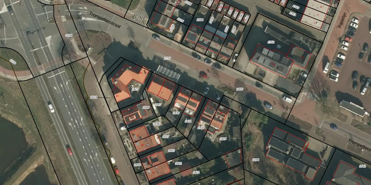 Het perceel waarop Trompetterstraat 44 staat heeft een oppervlakte van 163 m². Dit is een middelgroot perceel. De perceeloppervlakte wordt geregistreerd door het Kadaster. Gedetailleerde informatie over de maten van dit perceel kunt u vinden in het rapport Kadastrale kaart met maatvoering van Trompetterstraat 44.
