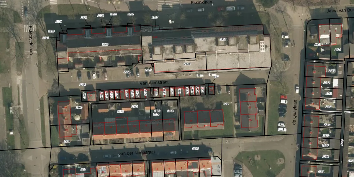 Het perceel waarop Van Alenstraat 14-p staat heeft een oppervlakte van 33 m². Dit is een klein perceel. De perceeloppervlakte wordt geregistreerd door het Kadaster. Gedetailleerde informatie over de maten van dit perceel kunt u vinden in het rapport Kadastrale kaart met maatvoering van Van Alenstraat 14-p.