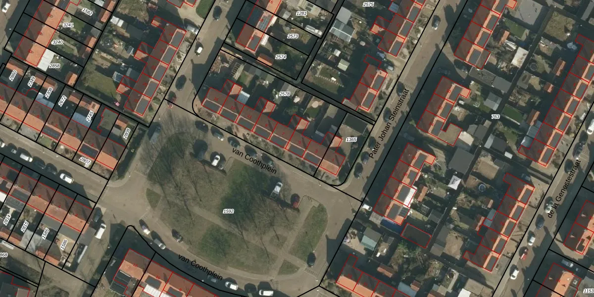 Het perceel waarop van Coothplein 5 staat heeft een oppervlakte van 1138 m². Dit is een zeer groot perceel. De perceeloppervlakte wordt geregistreerd door het Kadaster. Gedetailleerde informatie over de maten van dit perceel kunt u vinden in het rapport Kadastrale kaart met maatvoering van van Coothplein 5.