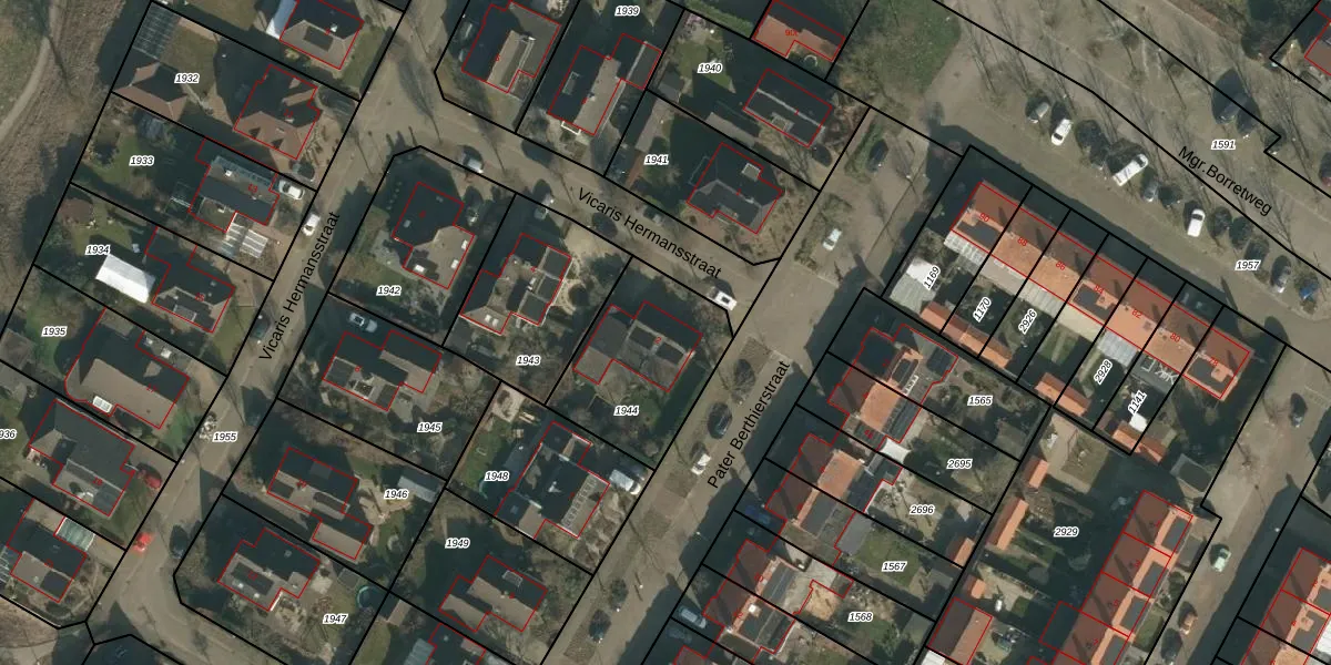 Het perceel waarop Vicaris Hermansstraat 2 staat heeft een oppervlakte van 502 m². Dit is een groot perceel. De perceeloppervlakte wordt geregistreerd door het Kadaster. Gedetailleerde informatie over de maten van dit perceel kunt u vinden in het rapport Kadastrale kaart met maatvoering van Vicaris Hermansstraat 2.