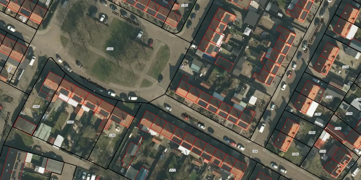 Het perceel waarop Zittertstraat 13 staat heeft een oppervlakte van 8070 m². Dit is een zeer groot perceel. De perceeloppervlakte wordt geregistreerd door het Kadaster. Gedetailleerde informatie over de maten van dit perceel kunt u vinden in het rapport Kadastrale kaart met maatvoering van Zittertstraat 13.