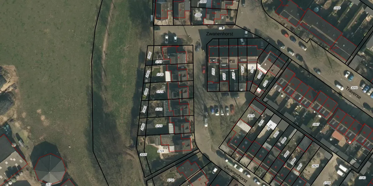 Gebruik de zoekbalk of klik op een perceel voor informatie over de adressen binnen dit perceel.