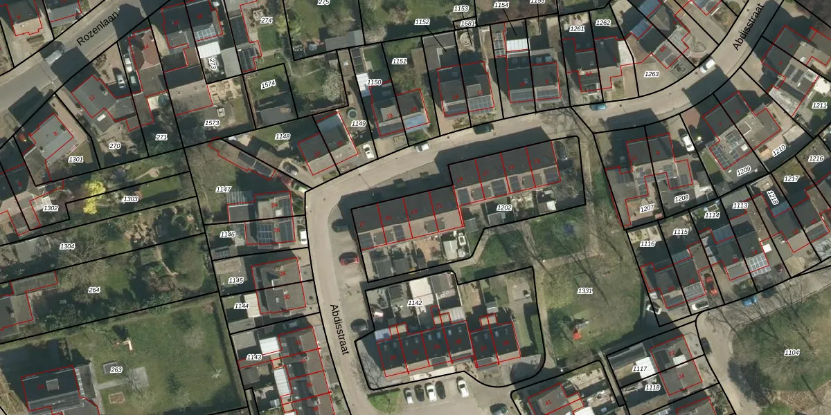 Het perceel waarop Abdisstraat 23 staat heeft een oppervlakte van 1000 m². Dit is een zeer groot perceel. De perceeloppervlakte wordt geregistreerd door het Kadaster. Gedetailleerde informatie over de maten van dit perceel kunt u vinden in het rapport Kadastrale kaart met maatvoering van Abdisstraat 23.