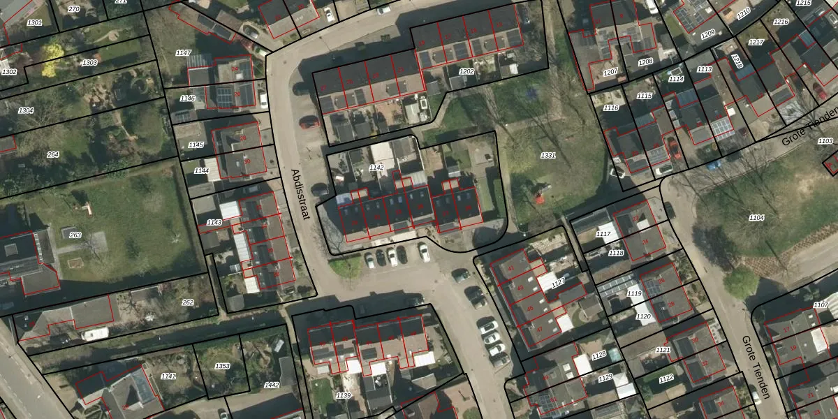 Het perceel waarop Abdisstraat 35 staat heeft een oppervlakte van 1042 m². Dit is een zeer groot perceel. De perceeloppervlakte wordt geregistreerd door het Kadaster. Gedetailleerde informatie over de maten van dit perceel kunt u vinden in het rapport Kadastrale kaart met maatvoering van Abdisstraat 35.