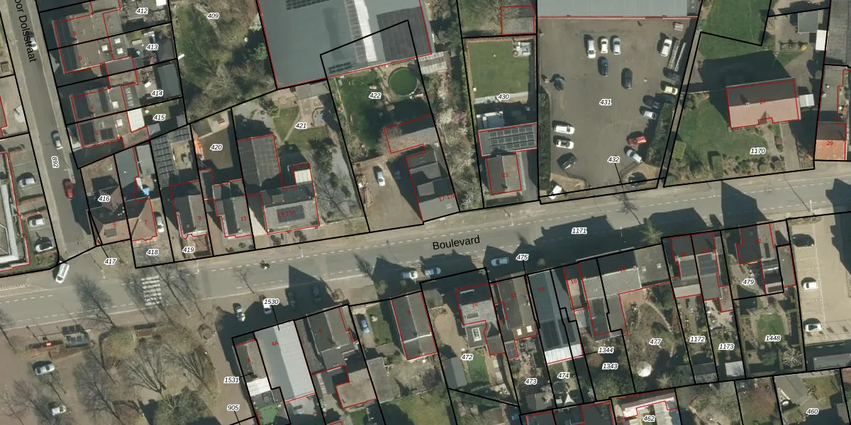 Het perceel waarop Boulevard 17-A staat heeft een oppervlakte van 990 m². Dit is een groot perceel. De perceeloppervlakte wordt geregistreerd door het Kadaster. Gedetailleerde informatie over de maten van dit perceel kunt u vinden in het rapport Kadastrale kaart met maatvoering van Boulevard 17-A.
