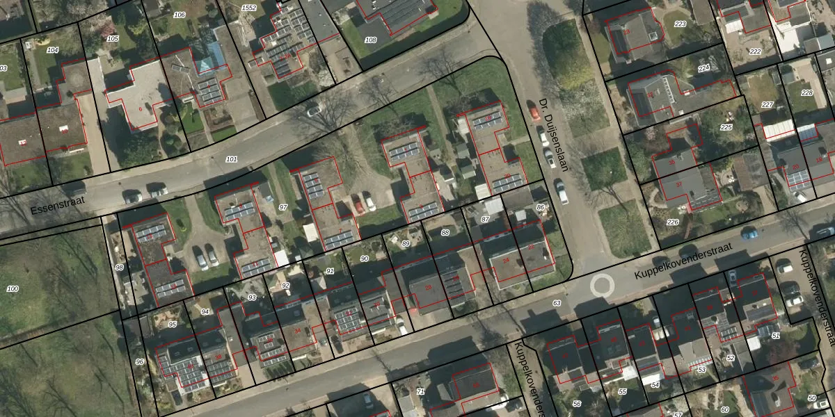 Het perceel waarop Essenstraat 3 staat heeft een oppervlakte van 2695 m². Dit is een zeer groot perceel. De perceeloppervlakte wordt geregistreerd door het Kadaster. Gedetailleerde informatie over de maten van dit perceel kunt u vinden in het rapport Kadastrale kaart met maatvoering van Essenstraat 3.
