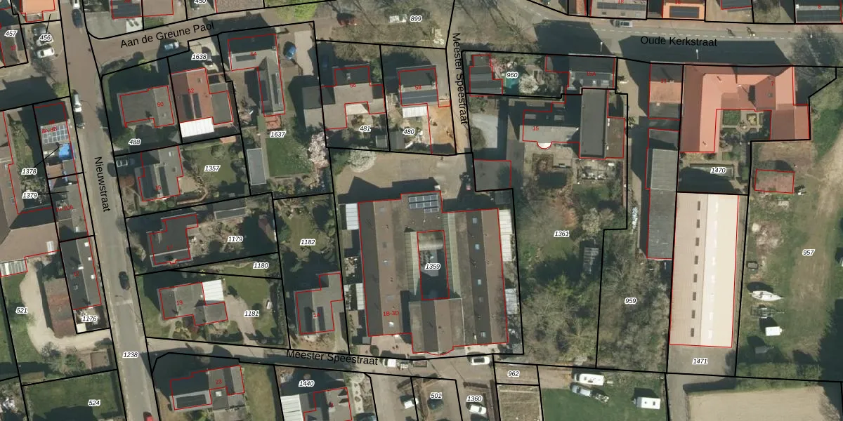 Het perceel waarop Meester Speestraat 2-F staat heeft een oppervlakte van 1965 m². Dit is een zeer groot perceel. De perceeloppervlakte wordt geregistreerd door het Kadaster. Gedetailleerde informatie over de maten van dit perceel kunt u vinden in het rapport Kadastrale kaart met maatvoering van Meester Speestraat 2-F.