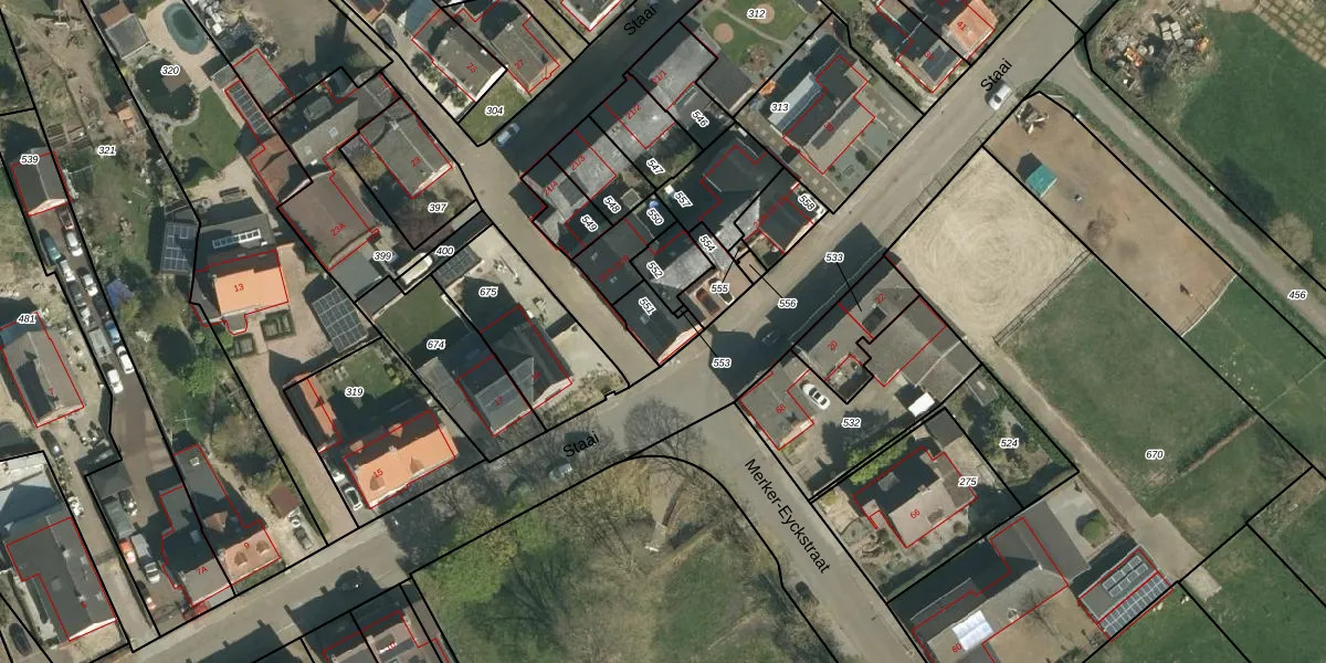 Gebruik de zoekbalk of klik op een perceel voor informatie over de adressen binnen dit perceel.