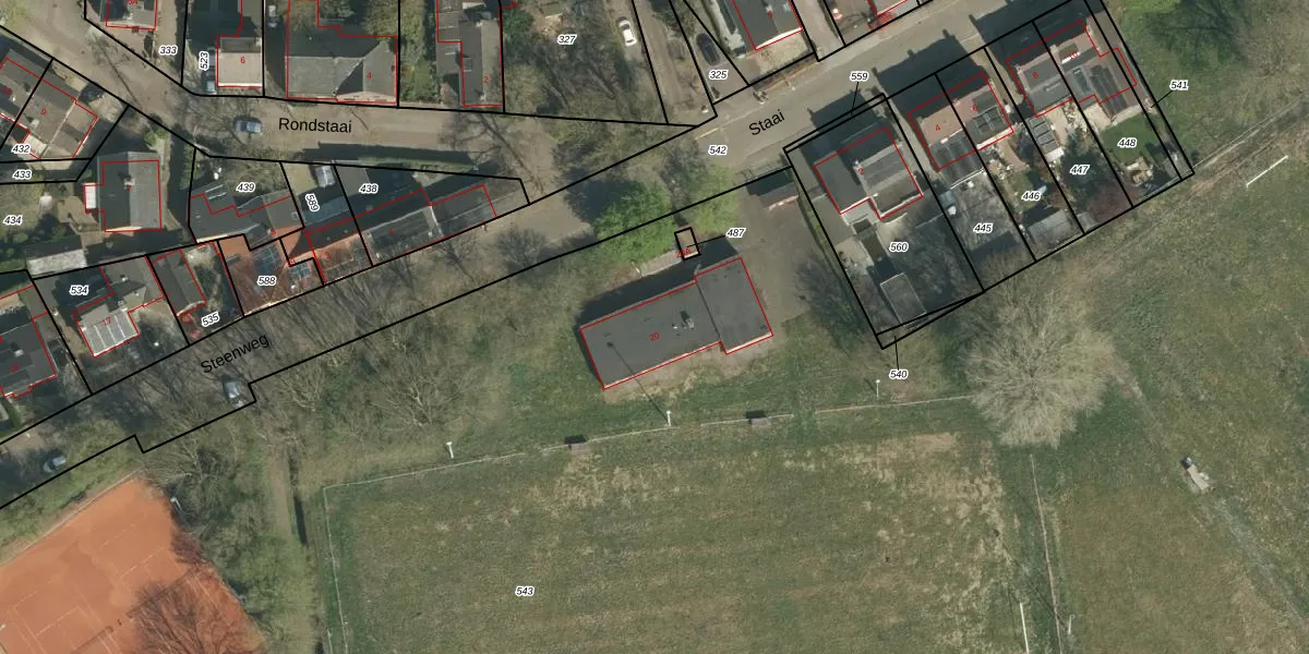 Het perceel waarop Steenweg 20 staat heeft een oppervlakte van 3,7 ha. Dit is een zeer groot perceel. De perceeloppervlakte wordt geregistreerd door het Kadaster. Gedetailleerde informatie over de maten van dit perceel kunt u vinden in het rapport Kadastrale kaart met maatvoering van Steenweg 20.