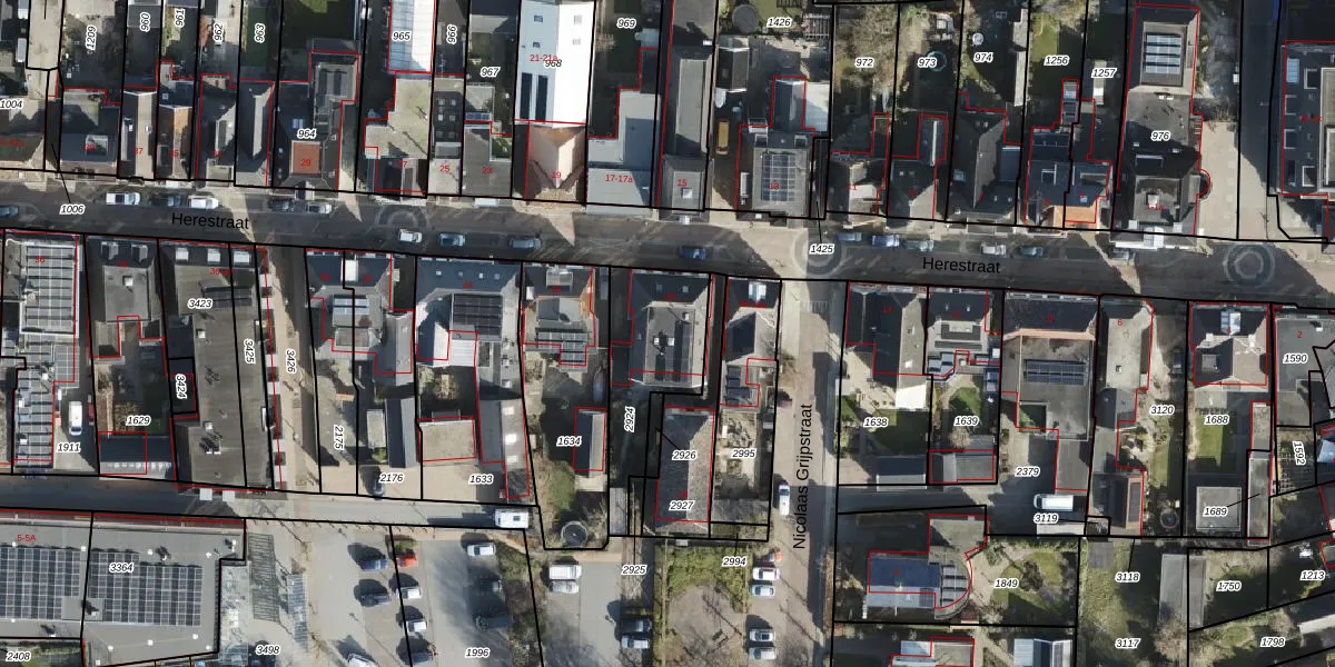 Het perceel waarop Herestraat 20 staat heeft een oppervlakte van 382 m². Dit is een groot perceel. De perceeloppervlakte wordt geregistreerd door het Kadaster. Gedetailleerde informatie over de maten van dit perceel kunt u vinden in het rapport Kadastrale kaart met maatvoering van Herestraat 20.