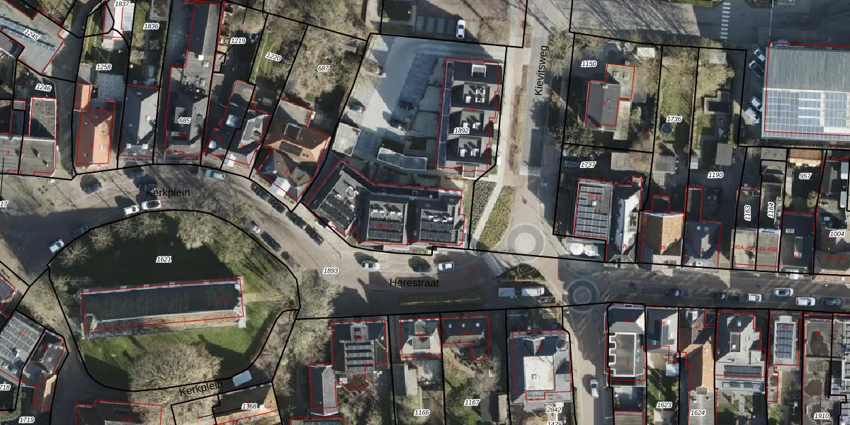 Het perceel waarop Herestraat 59 staat heeft een oppervlakte van 1803 m². Dit is een zeer groot perceel. De perceeloppervlakte wordt geregistreerd door het Kadaster. Gedetailleerde informatie over de maten van dit perceel kunt u vinden in het rapport Kadastrale kaart met maatvoering van Herestraat 59.