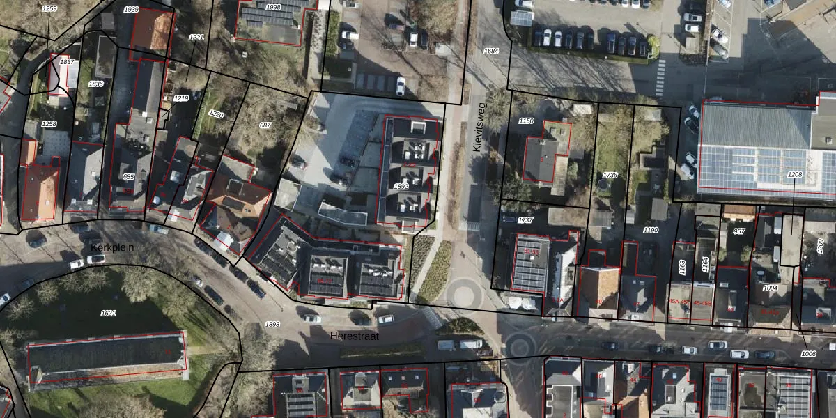 Het perceel waarop Kievitsweg 2 staat heeft een oppervlakte van 1803 m². Dit is een zeer groot perceel. De perceeloppervlakte wordt geregistreerd door het Kadaster. Gedetailleerde informatie over de maten van dit perceel kunt u vinden in het rapport Kadastrale kaart met maatvoering van Kievitsweg 2.